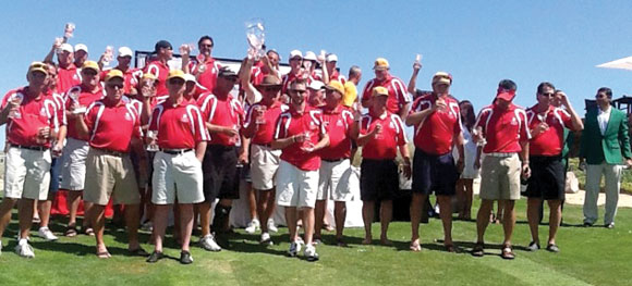 After the first round of matches, the US found themselves leading by 9 points (14-1/2 to 5-1/2). Midway through day one, Team USA Member Bernie Thomas got a hole-in-one on Hole #14, 175 yards. This was Bernie Thomas’ second hole-in-one within the last year.