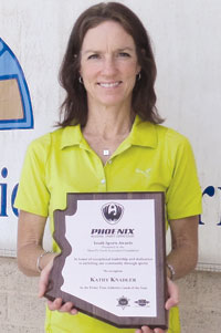 Kathy Knadler of the LPGA-USGA Girls Golf of Phoenix won Youth Coach of Year at The Phoenix Regional Sports Commission’s 2013 Youth Sports Awards.
