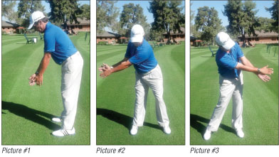 Now, simply rotate your forearms into a follow through position (picture 3). Your left palm should now be facing in front of you and the right palm behind you. If you have done all of this correctly, then you have just learned how to square your clubface during the golf swing and this is the basis upon which everything else will be built.