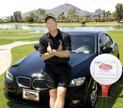 Steve deLaveaga of Gilbert, Arizona, won a BMW 328 hardtop convertible on his second hole of the tournament with a hole-in-one.  He aced the 169-yard hole with his 6 iron. Valued at $50,000, the car was donated by Chapman BMW on Camelback in Phoenix.