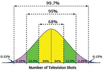To move forward, we first must take our control (televised shots) and plot out the total number of televised shots (5,760) onto the bell curve.