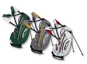 Technical advancements on the Superlight line include: patented top with TPR handle that provides a convenient spot to grab when picking the bag up and removing the bag from the shoulder, top mounted stand attachment for increased durability and stability, patented Roller Bottom and recessed Y-Spring activator for faster leg action and tight-to-the-bag retraction, triangular non-slip foot pads that resist sinking into grass and sliding on slick surfaces, and a full complement of pockets to include full-length clothing pocket, velour-lined valuable pouch, water bottle pouch, and ball and accessory pockets.