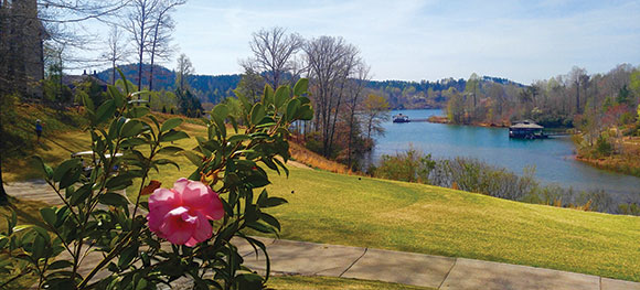 Homeowners might join the boat club and rent a slip or a boat on one of the Oconee lakes. Lake Jocasse was ranked #9 on National Geographic’s Top 50 lakes list. We absolutely loved our pontoon tour day on this 7,500-acre water world, visiting falls, stopping on shore for a picnic and hike through the woods over a suspension bridge where hikers walk by from the 76 miles of Foothills Trail. We watched eagles soar to their oversized tree top nests and ducks paddling over our wakes, and loooons, (“the loons Henry”), with webbed feet on their backs for a different propelling strategy.