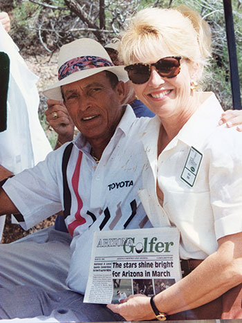 A Blast from the Past! – Chi Chi Rodriguez and Nancy Howard . First Tournament attended by Nancy with Arizona Golfer – The Tradition (Now the PGA Tour Champions) in April, 1994 at Cochise Golf Course at Desert Mountain in Scottsdale. This was The Tradition’s 6th Year and the Winner was Raymond Floyd.