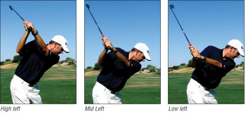 The location of the left arm (for a right handed golfer) at the top of the backswing will dictate the path through impact.